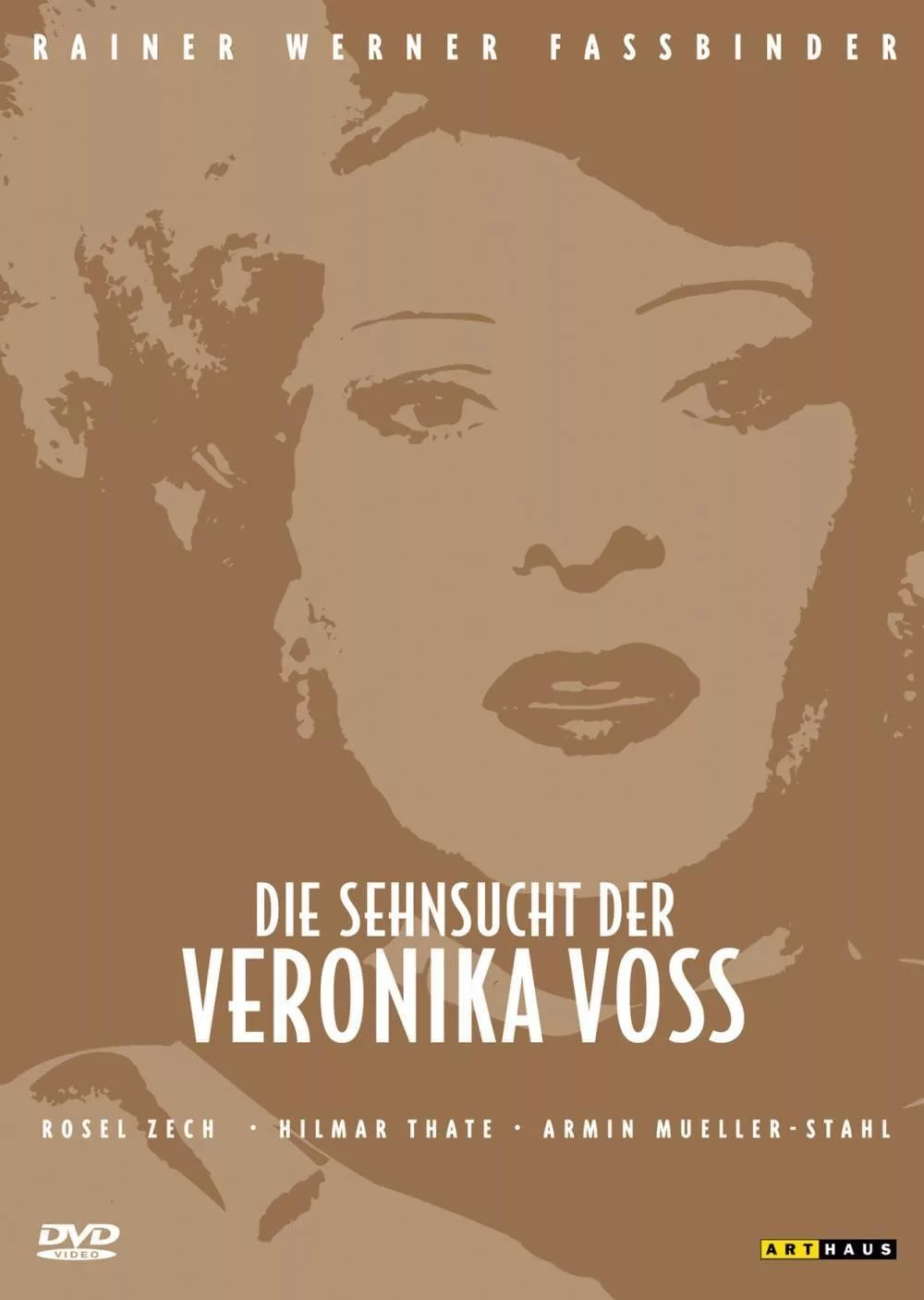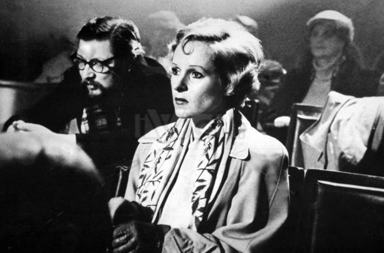 Throughout Fassbinder’s work we find such figures, great stars, mannered, decadent, in various stages of their decay. This film was inspired by the real life of Sybille Schmitz, a German star of the 1930s who also fell athwart of a clinic supplying drugs. Many critics look at Veronika Voss and are reminded of Gloria Swanson in Billy Wilder’s “Sunset Boulevard.” Perhaps the association is intentional. When Veronika finally, with great difficulty, wheedles a bit part from her former agent, the director of the scene (Volker Spengler) wears glasses and has his hat pushed back on his head, Wilder-style. She only has two lines in her scene, but blows them again and again. She’s rattled and craves a fix. She is watched by Robert Krone and by her ex-husband Max Rehbein (Armin Mueller-Stahl), who wearily explain to the sports writer that his former wife is a hopeless addict.